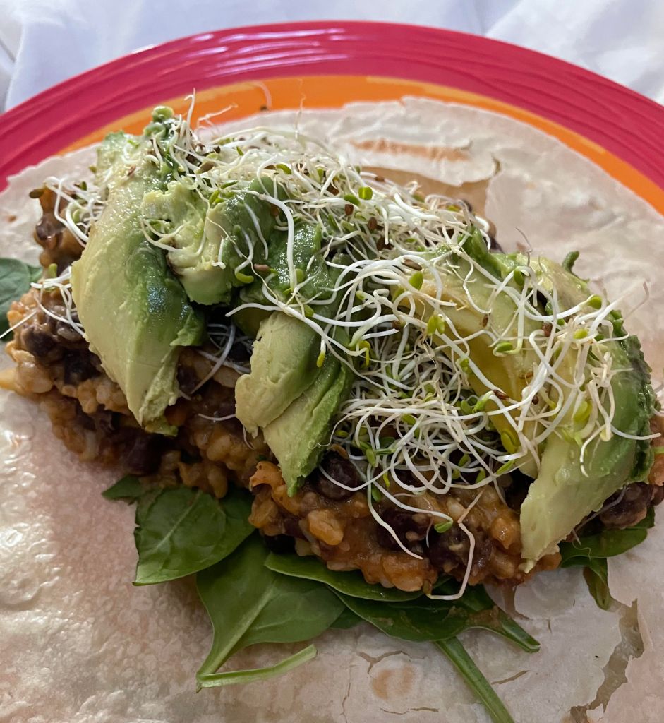 Rice of choice (cilantro rice, leftover white or brown rice with or without beans)